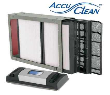 Many of us are used to those fiberglass filters used in our return vents. Some people also use HEPA filtration systems in specific rooms of the house. The AccuClean Whole-Home Air Filtration System is 100 times more effective than a standard fiberglass throwaway filter and eight times more effective than the best HEPA room air cleaner.